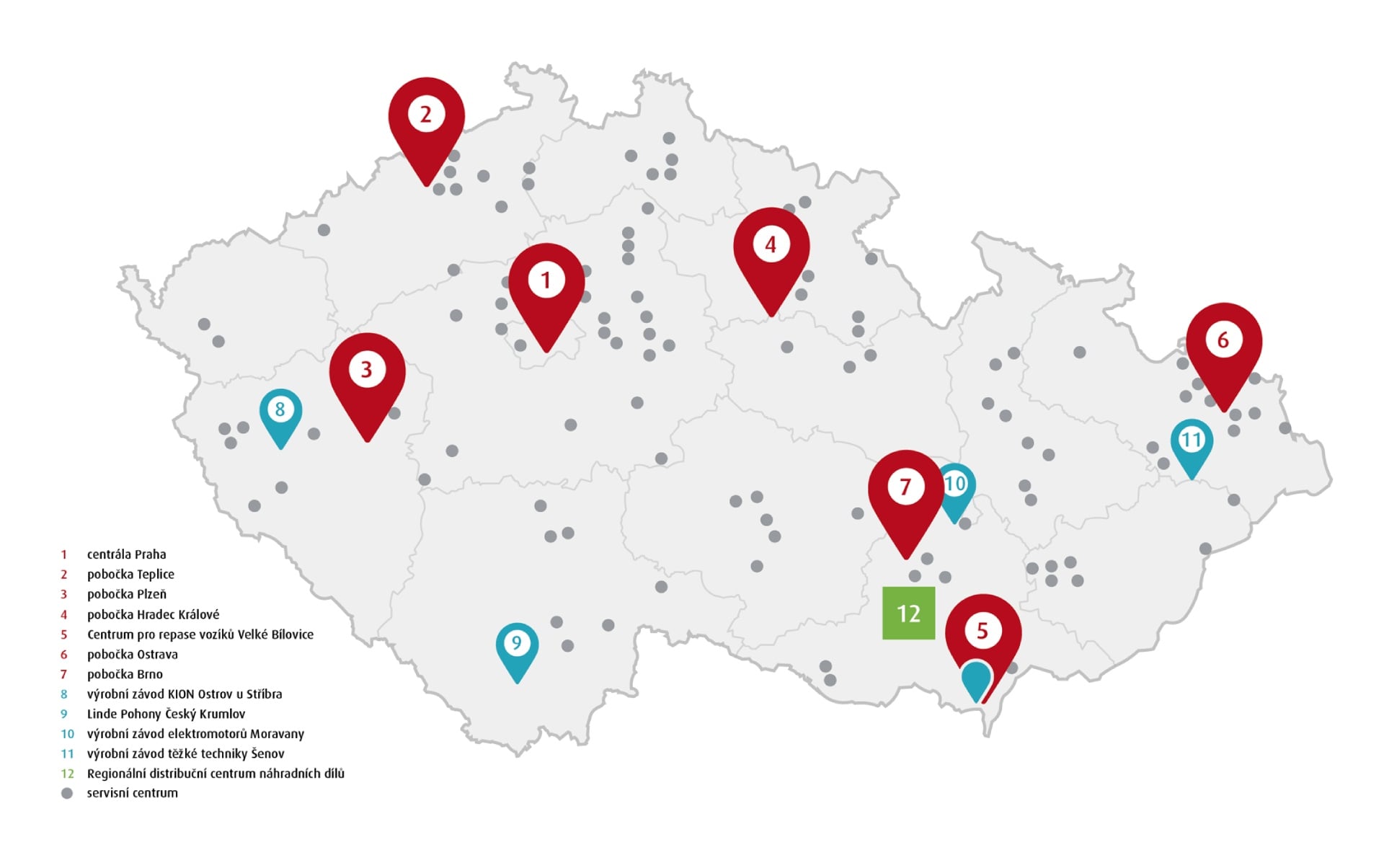 - Maximální dostupnost vozíků a řešení zajišťuje síť s více než 150 servisními techniky.